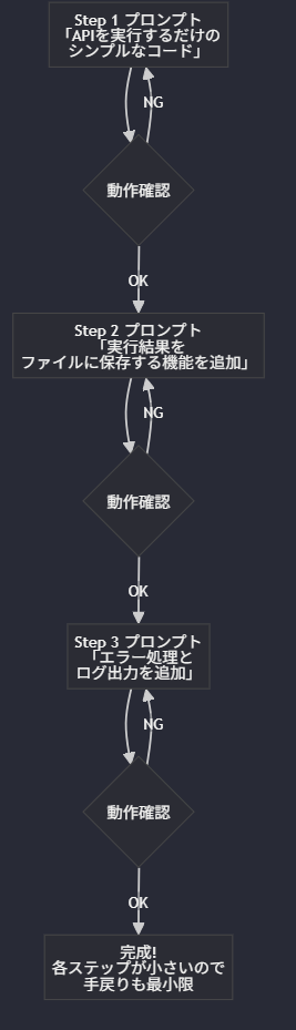 - まずは「APIを実行するだけのシンプルなコード」を作ってもらう